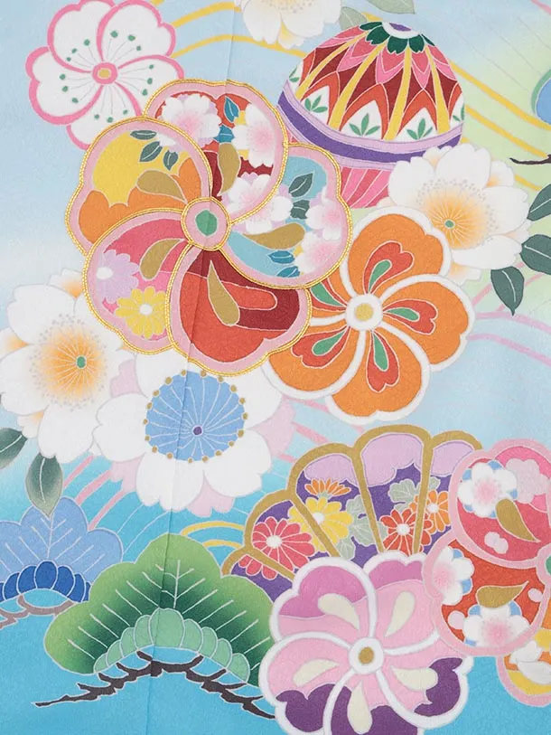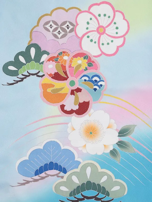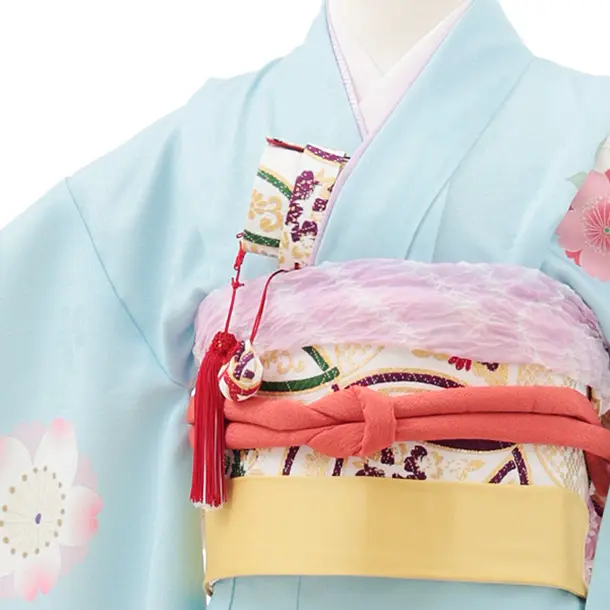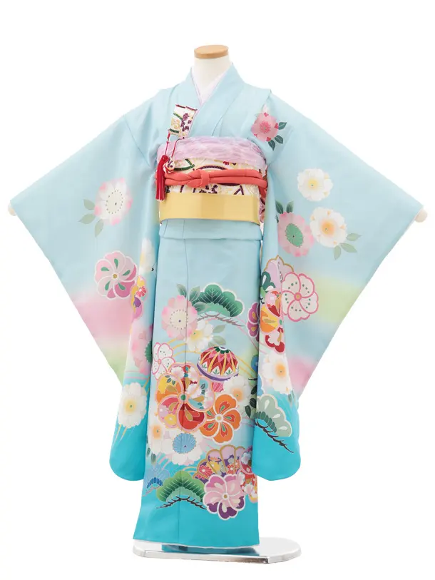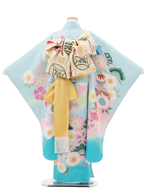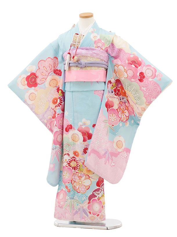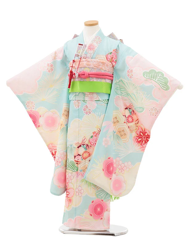 七五三(7歳結び帯)Y575 水色ぼかし 桜