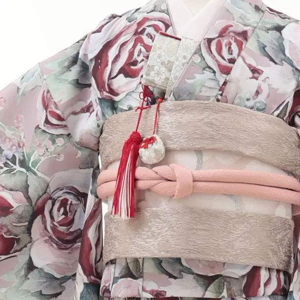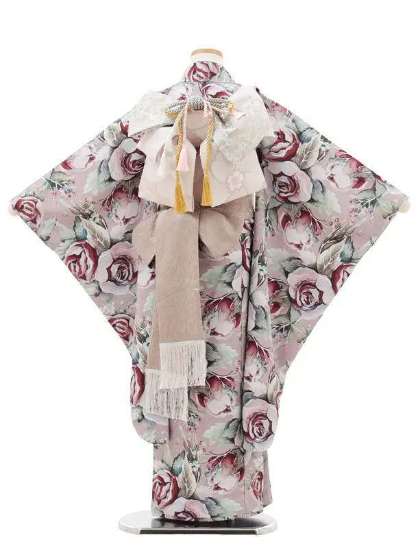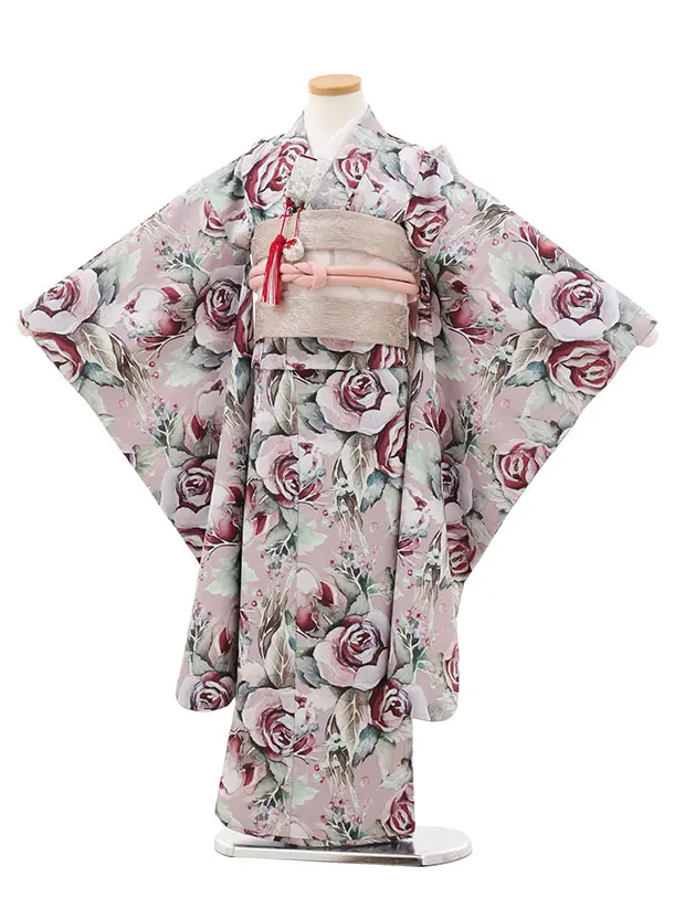 七五三(7歳結び帯)Y580 パープルベージュ バラ