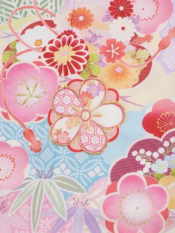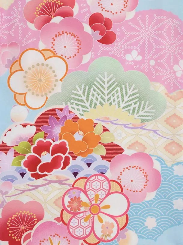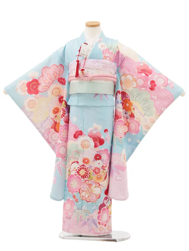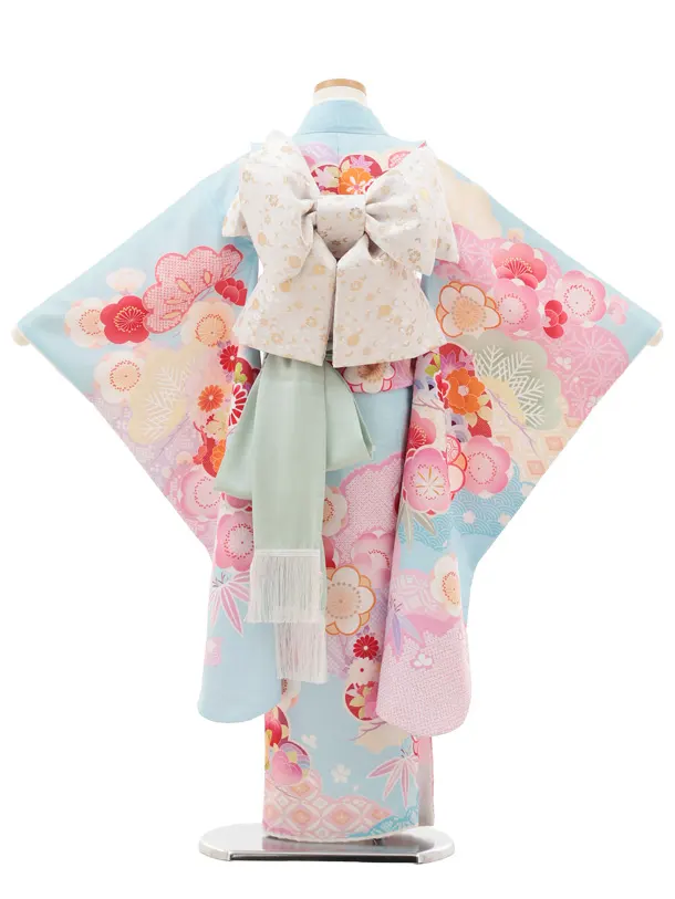 七五三(7歳結び帯)Y589 水色 松竹梅 薬玉