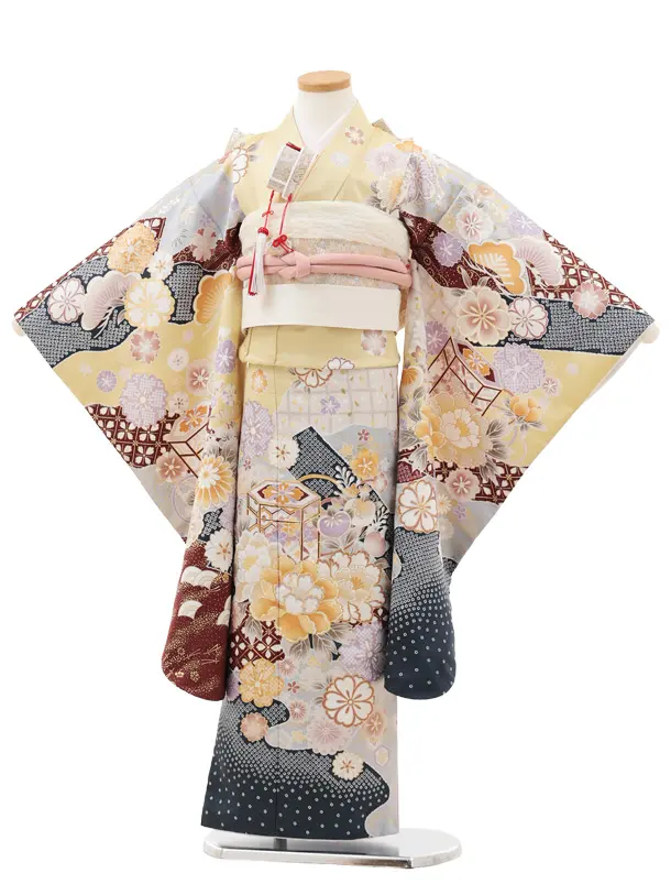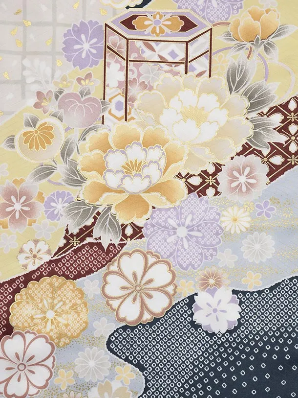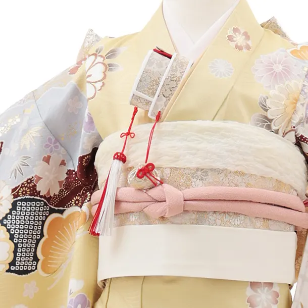 七五三(7歳結び帯)Y590 薄萌黄色 貝桶 牡丹