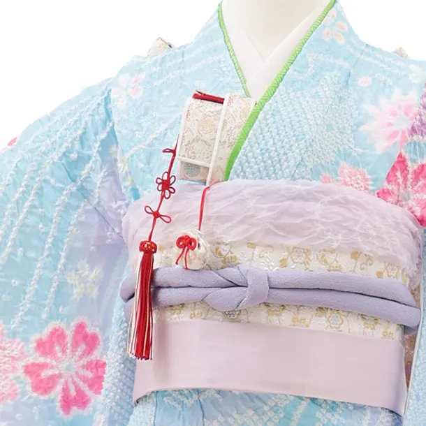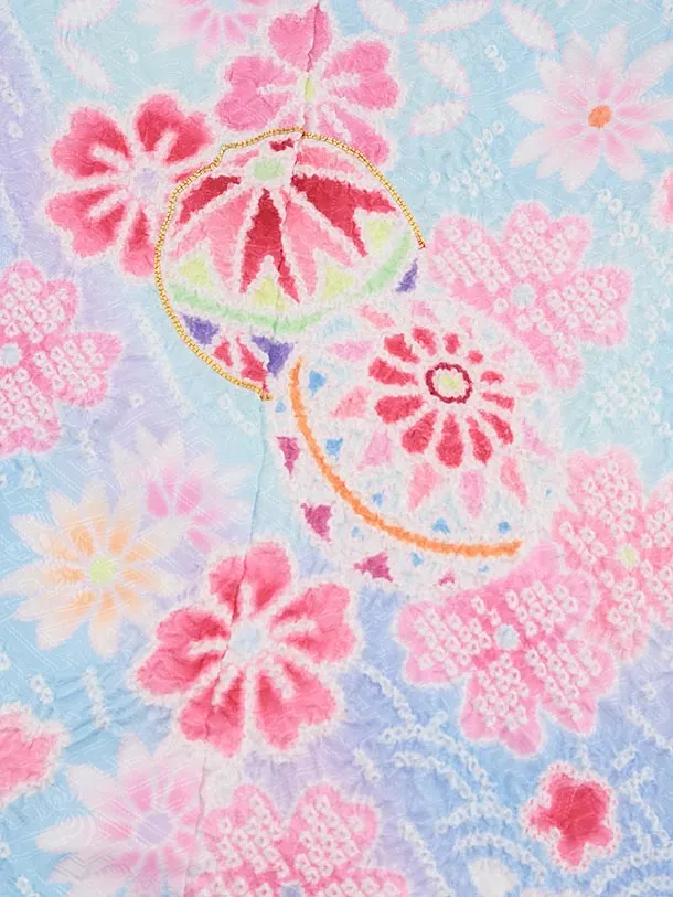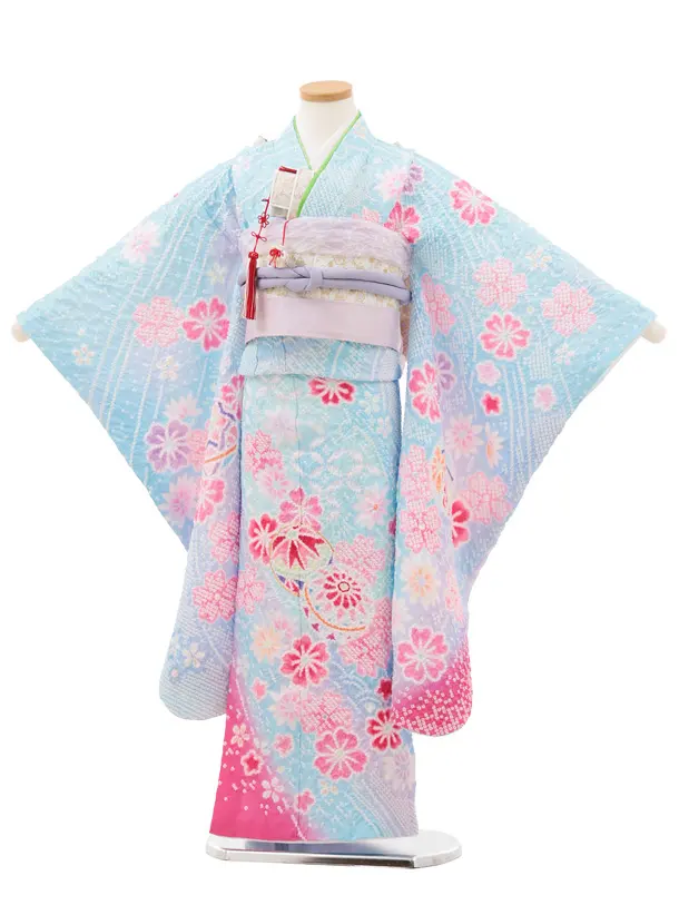七五三(7歳結び帯)Y600 水色ぼかし 鞠桜