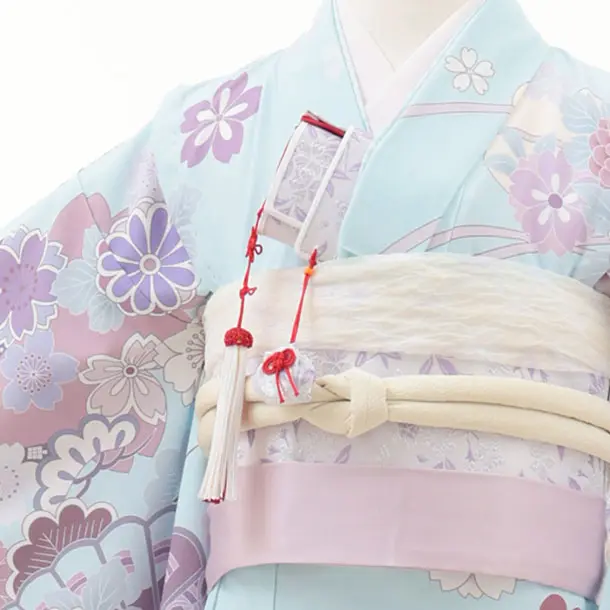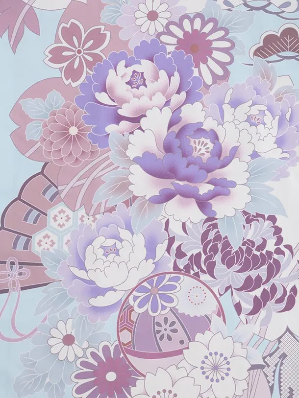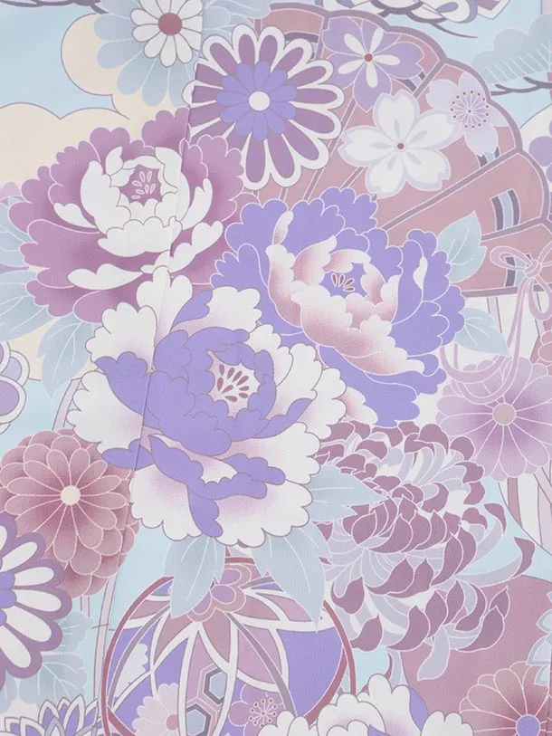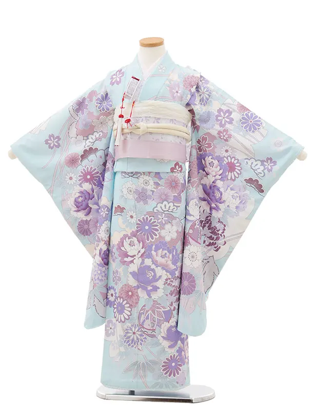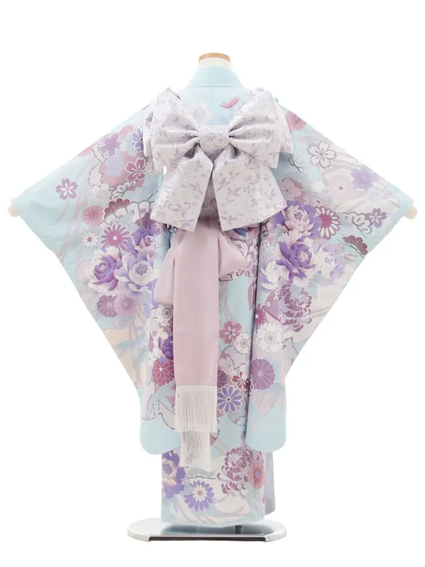 七五三(7歳結び帯)Y603 水色 鞠 牡丹