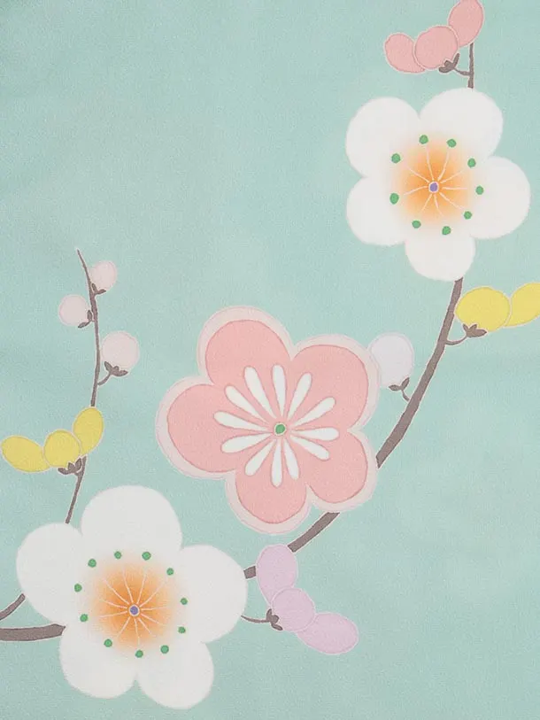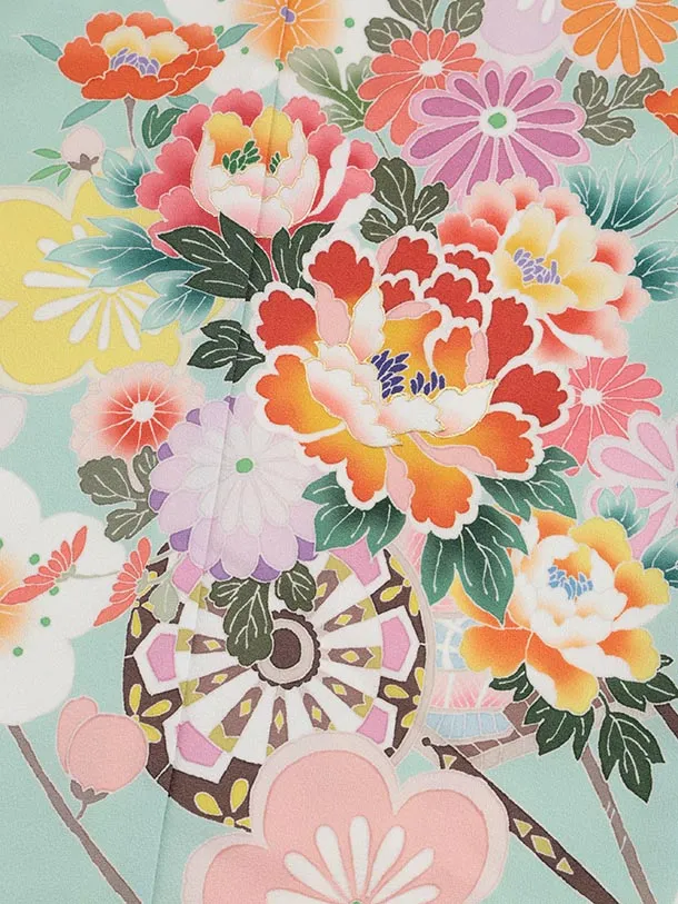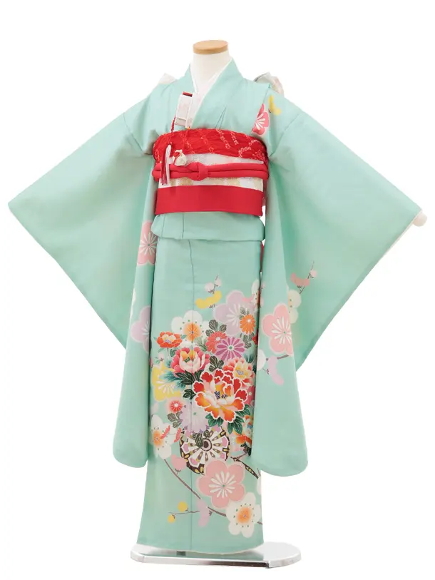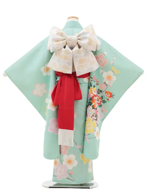 七五三(7歳結び帯)Y612 ミント 花車