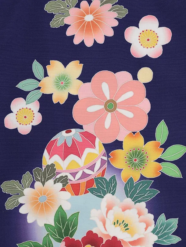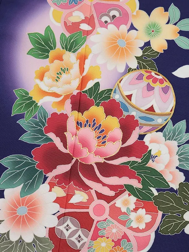 七五三(7歳結び帯)Y614 パープル 鞠に牡丹
