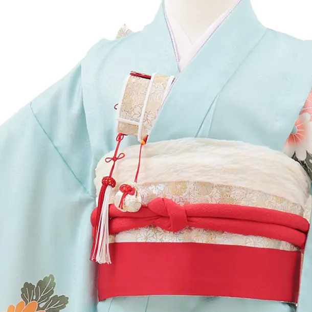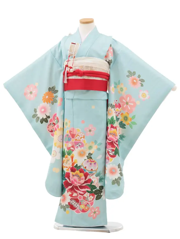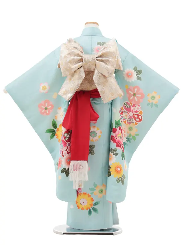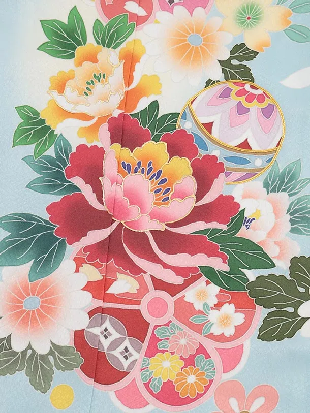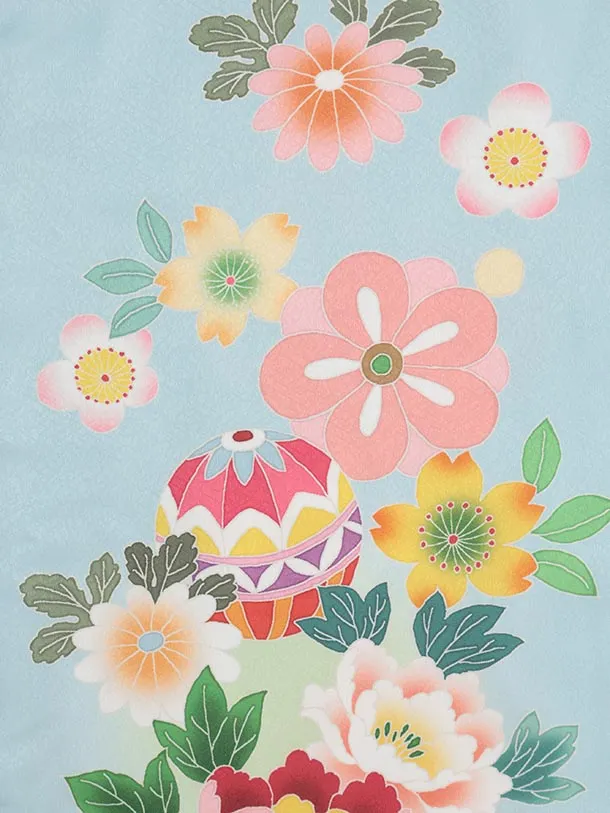 七五三(7歳結び帯)Y615 水色 鞠に牡丹