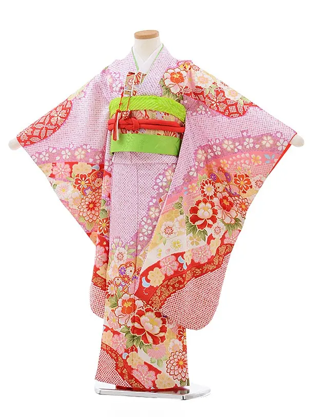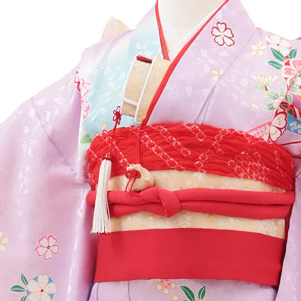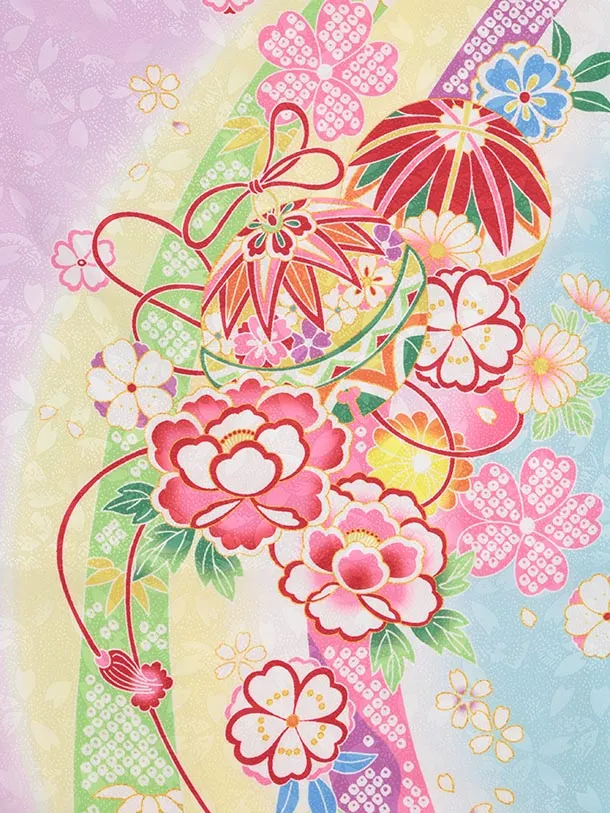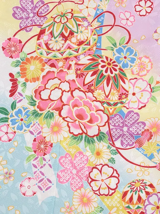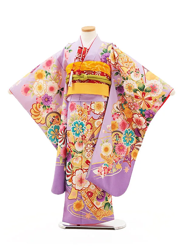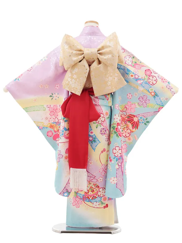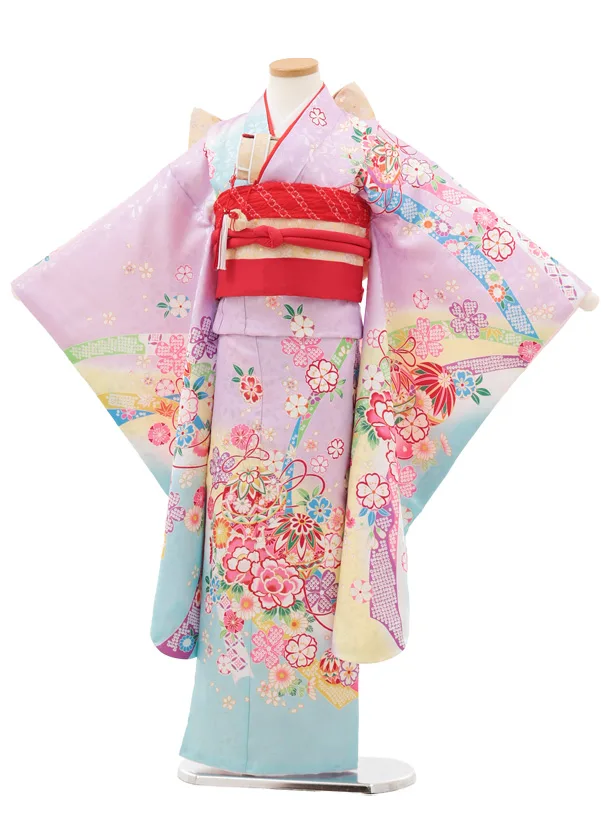 七五三(7歳結び帯)Y617 ラベンダー 裾水色 鞠に花