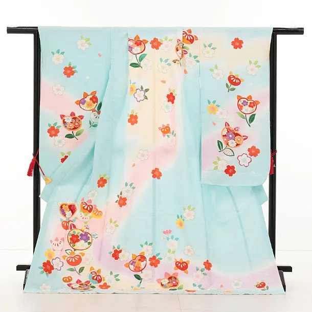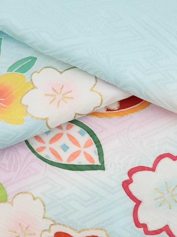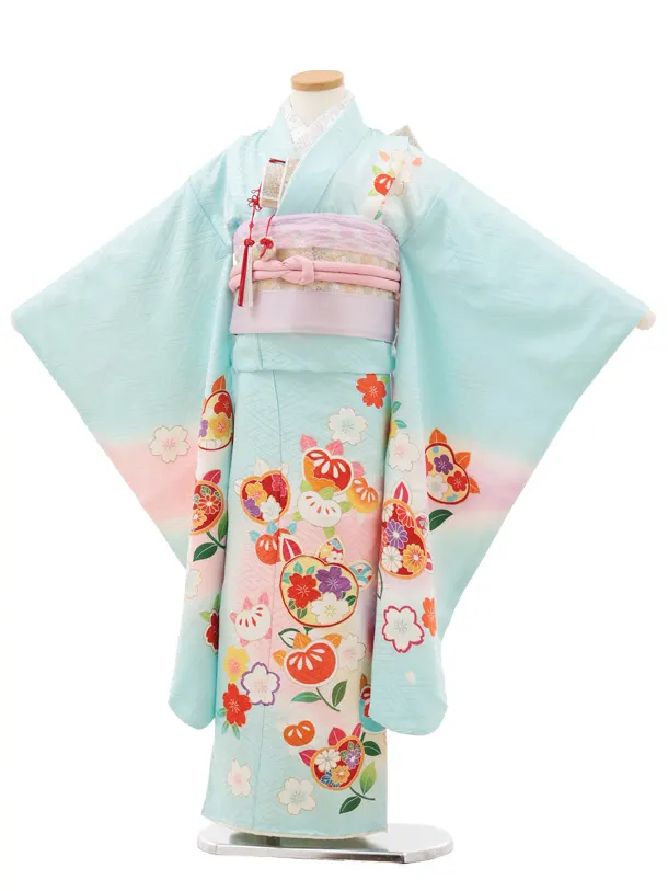 七五三(7歳結び帯)Y624【正絹】水色 橘