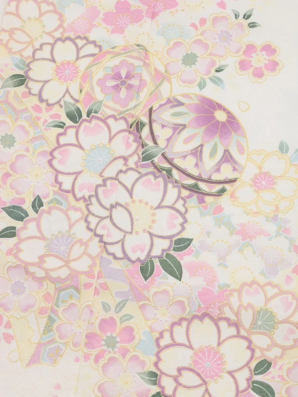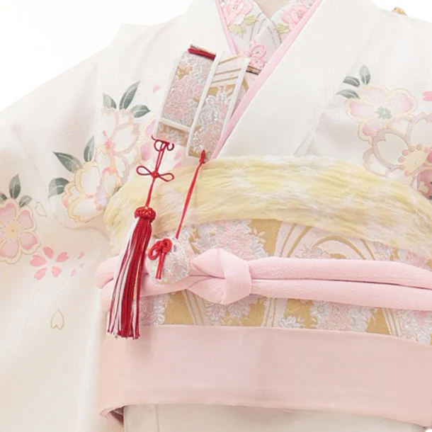七五三(7歳結び帯)Y641 白 鞠 桜