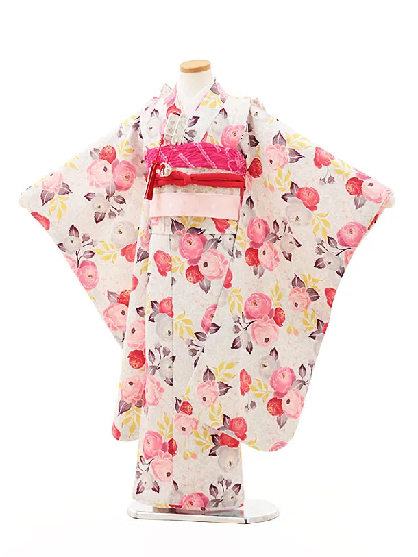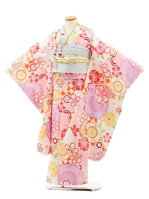 七五三(7歳結び帯)Y642 白 鞠 桜