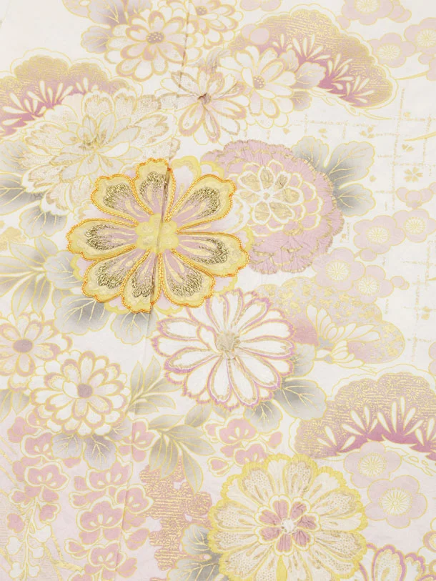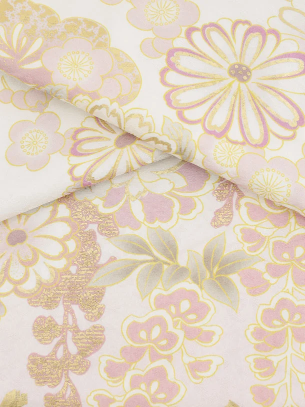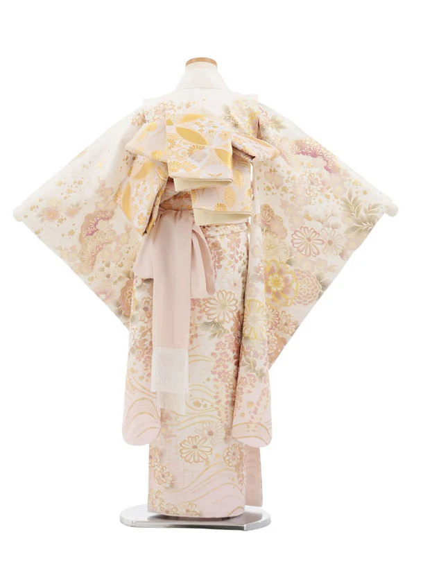 七五三(7歳袋帯)Y657 【高級正絹】桂由美 白地 金彩裾ピンク 花づくし