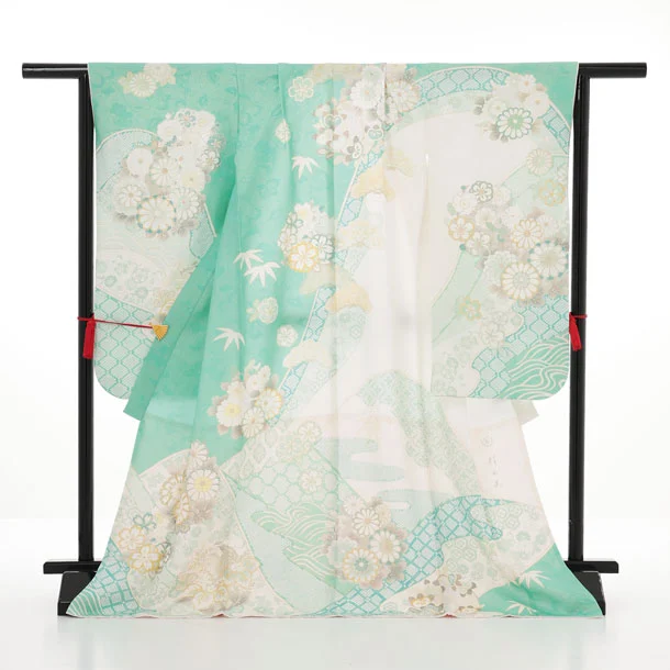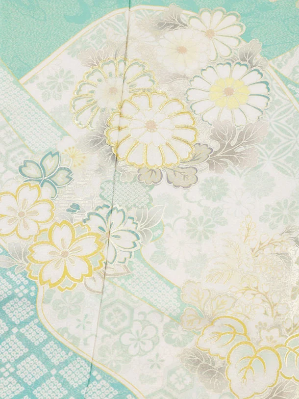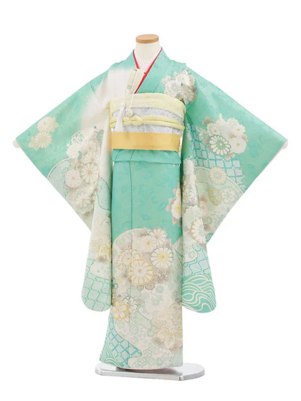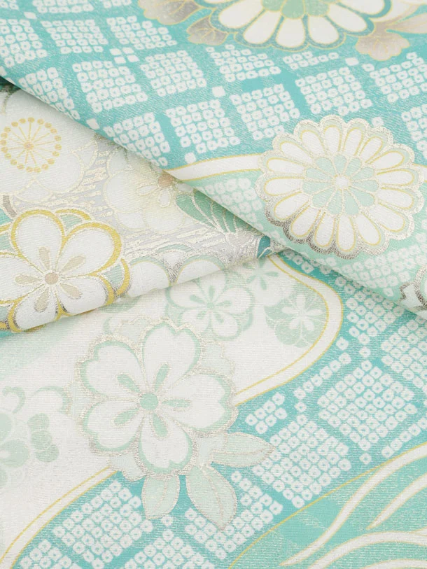 七五三(7歳袋帯)Y660 【高級正絹】桂由美 ミントラメ波に花づくし