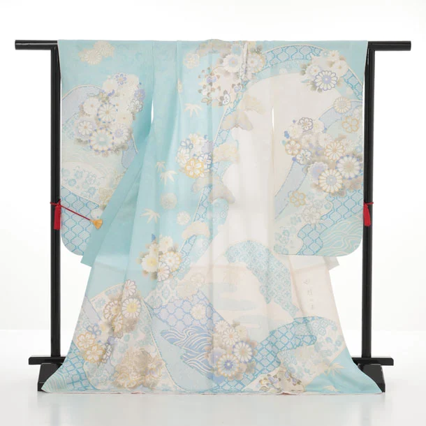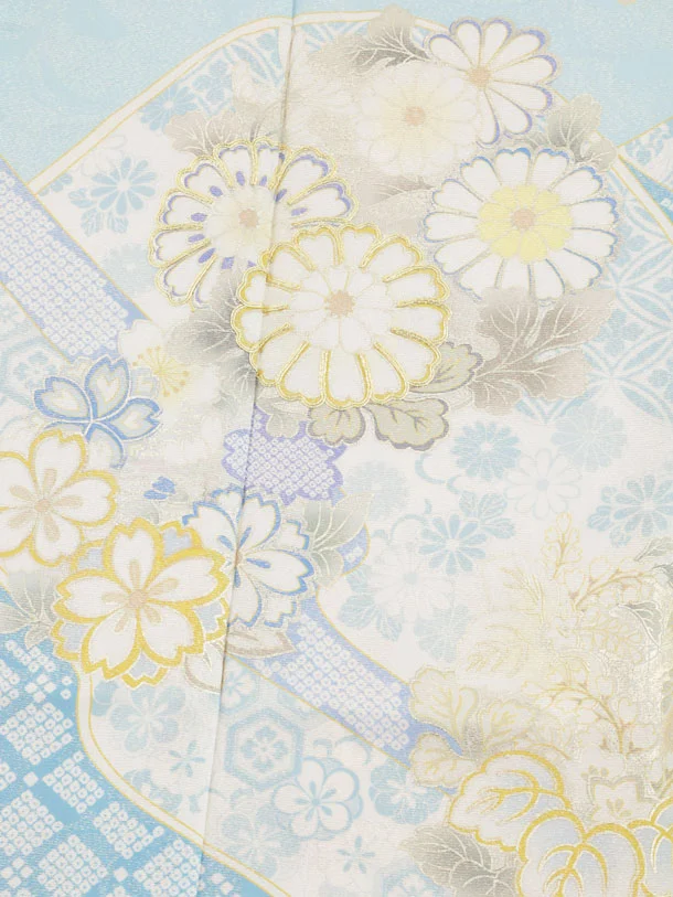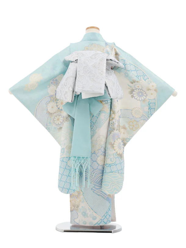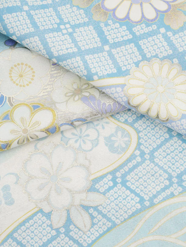 七五三(7歳袋帯)Y661 【高級正絹】桂由美 水色ラメ波に花づくし