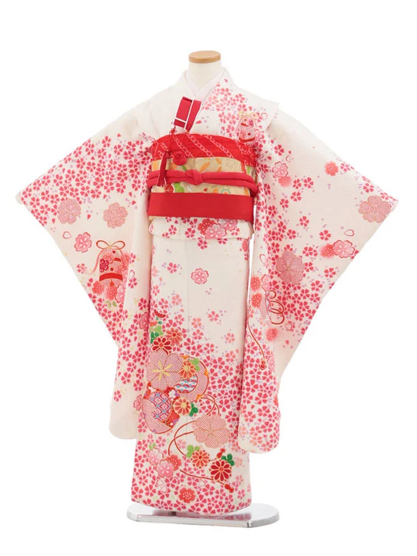 七五三(7歳袋帯)Y664 【高級正絹】オフ白桜づくし