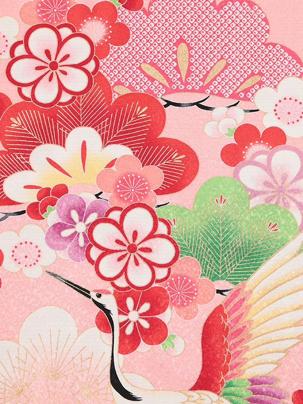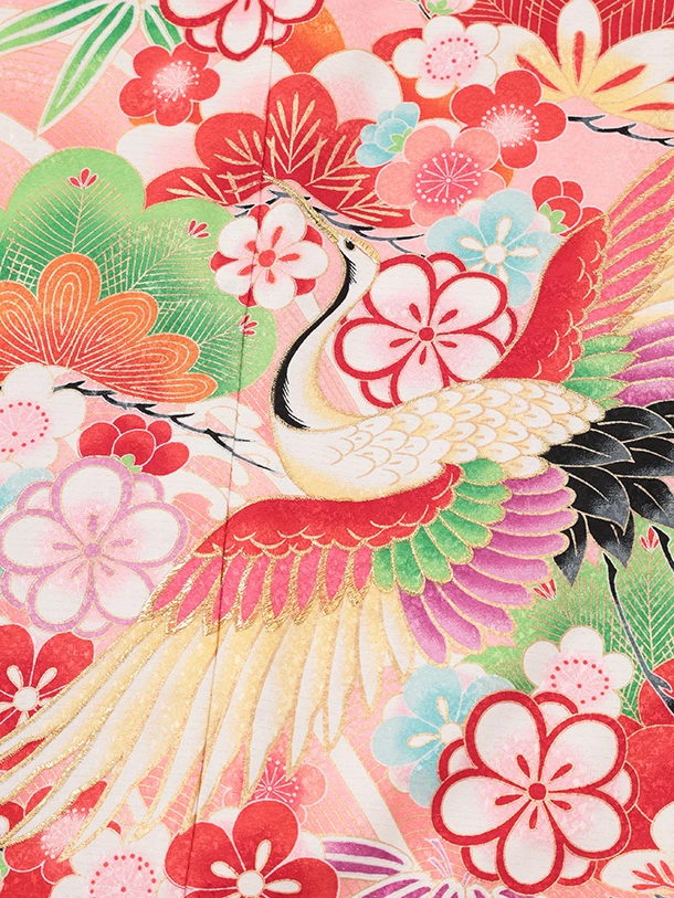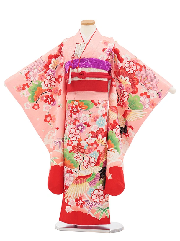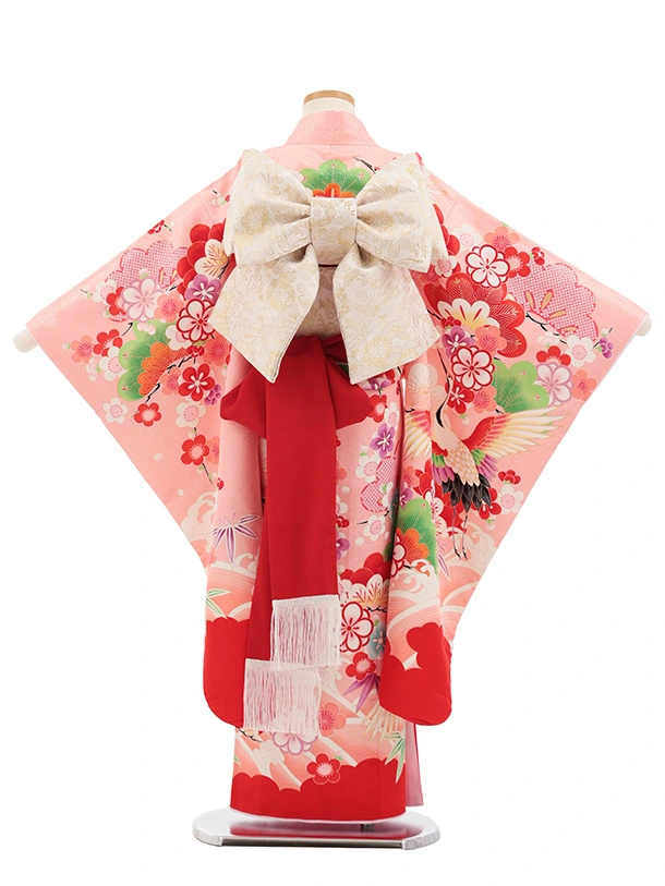 七五三(7歳結び帯)Y696 ピンク裾赤 鶴に吉祥文様