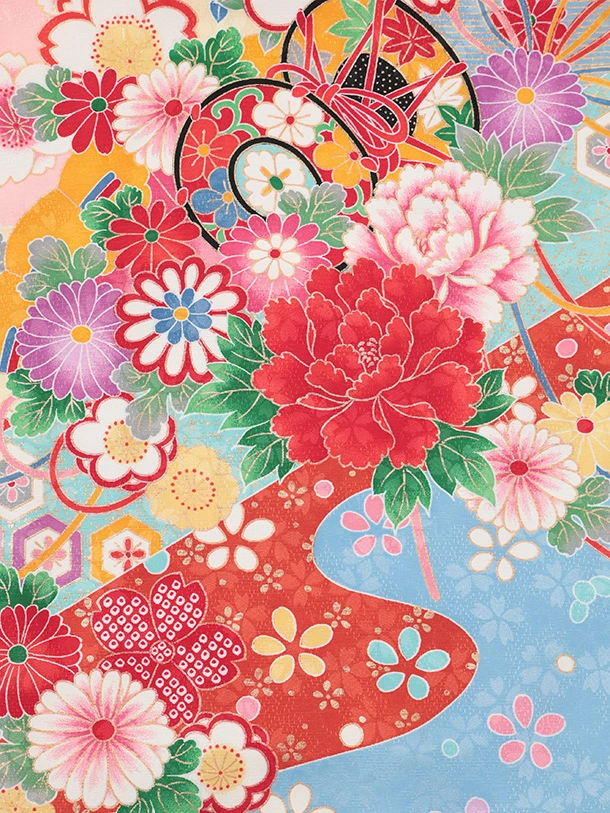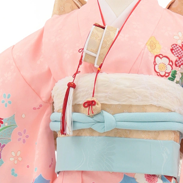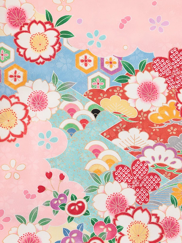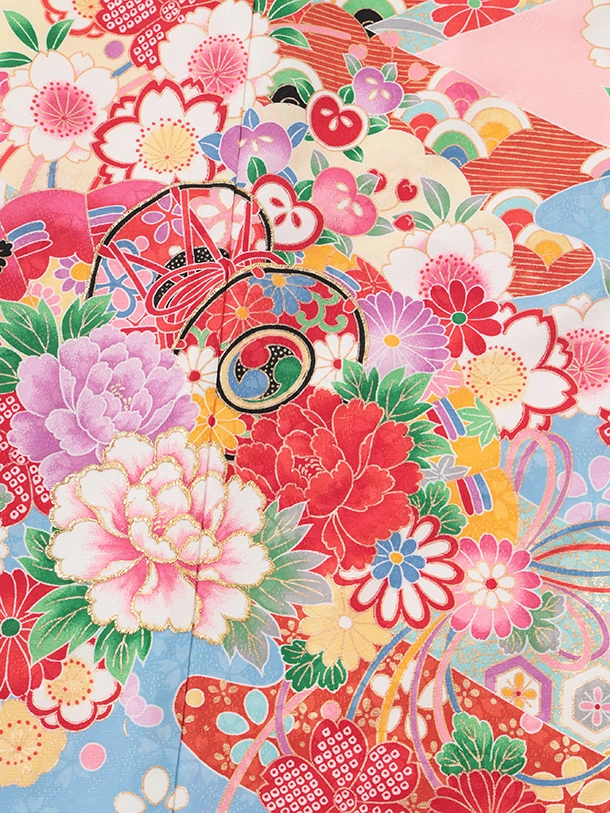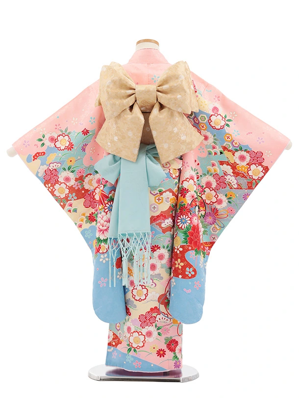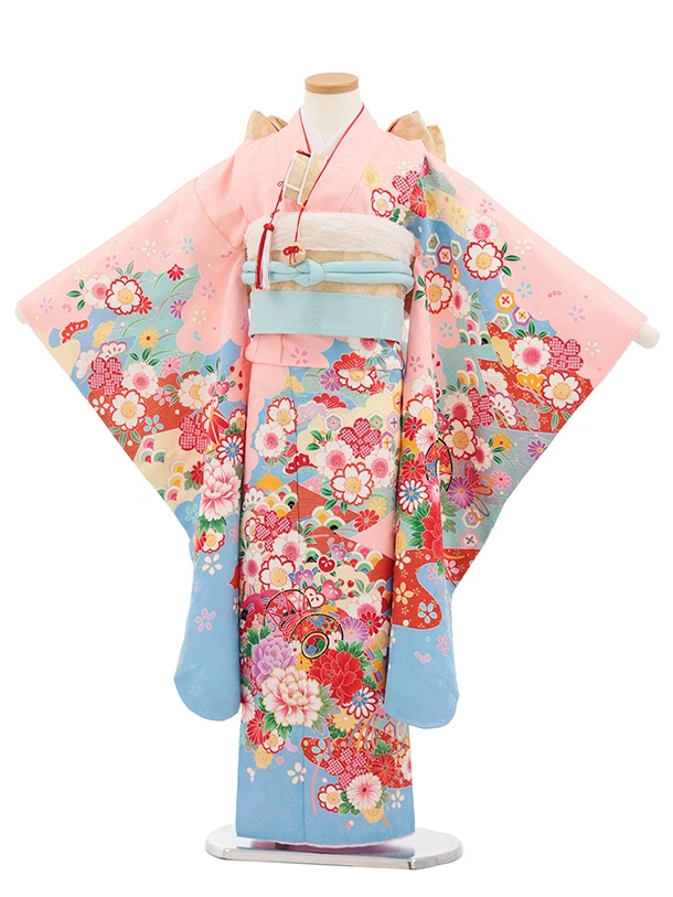 七五三(7歳結び帯)Y700 ピンク裾水色 鼓に花