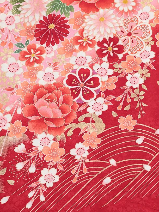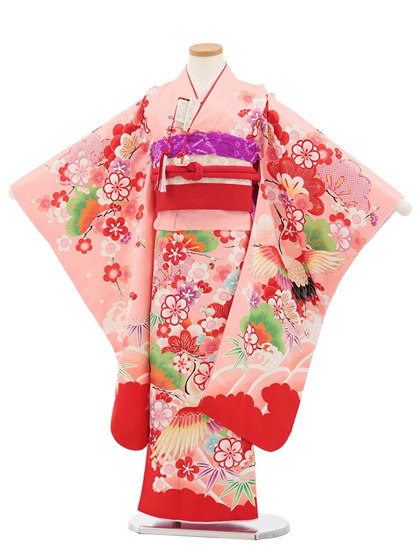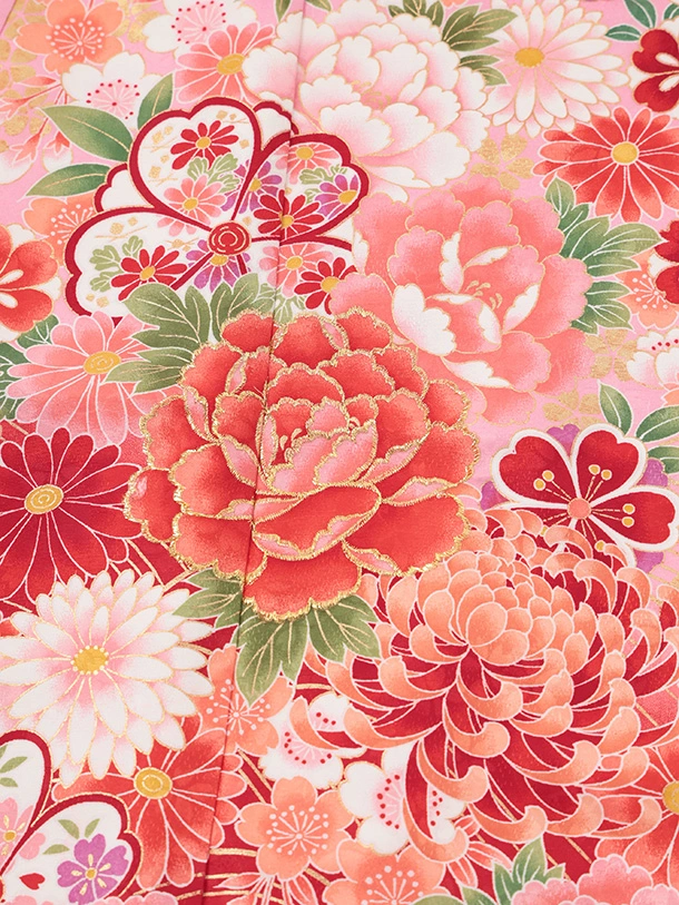 七五三(7歳結び帯)Y703 ピンク赤ぼかし 花づくし