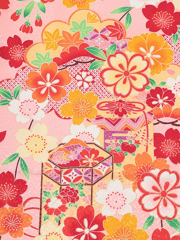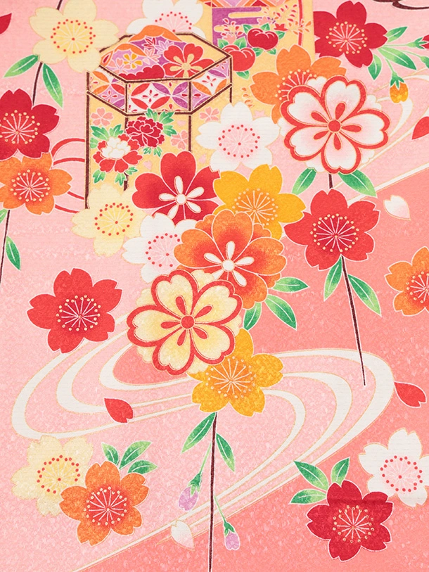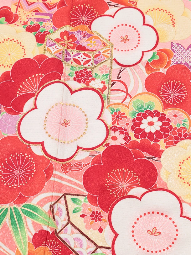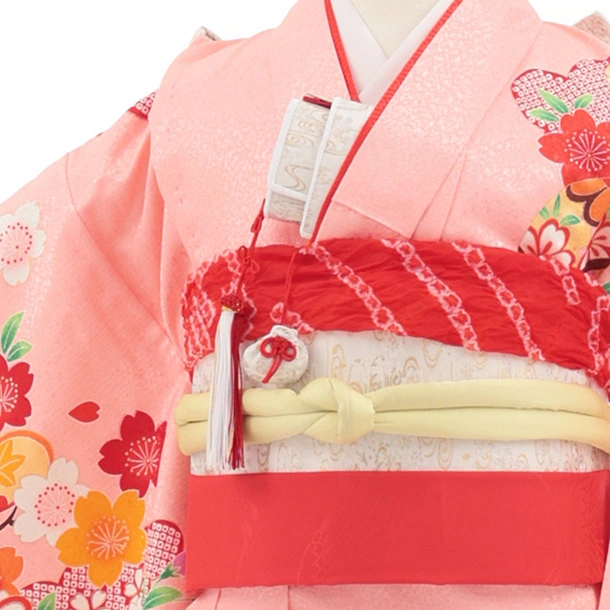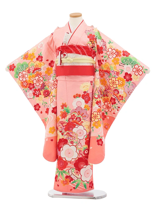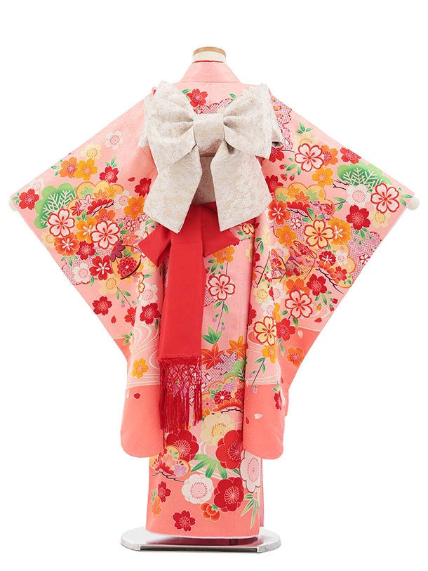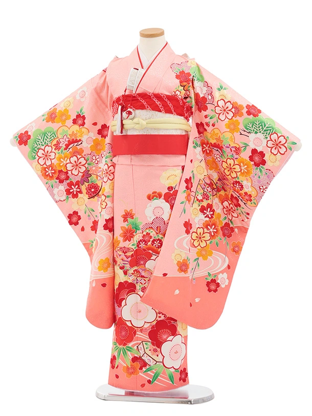 七五三(7歳結び帯)Y707 ピンク地 梅に貝桶