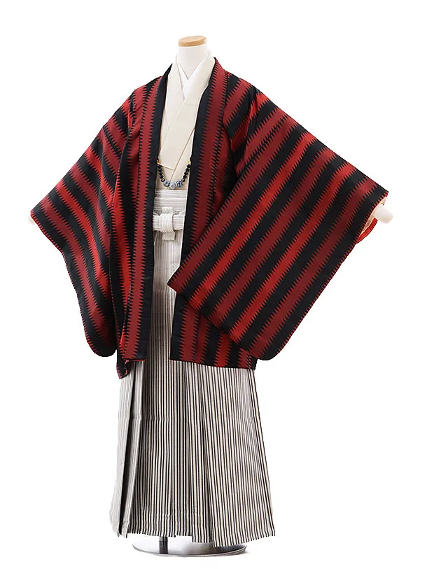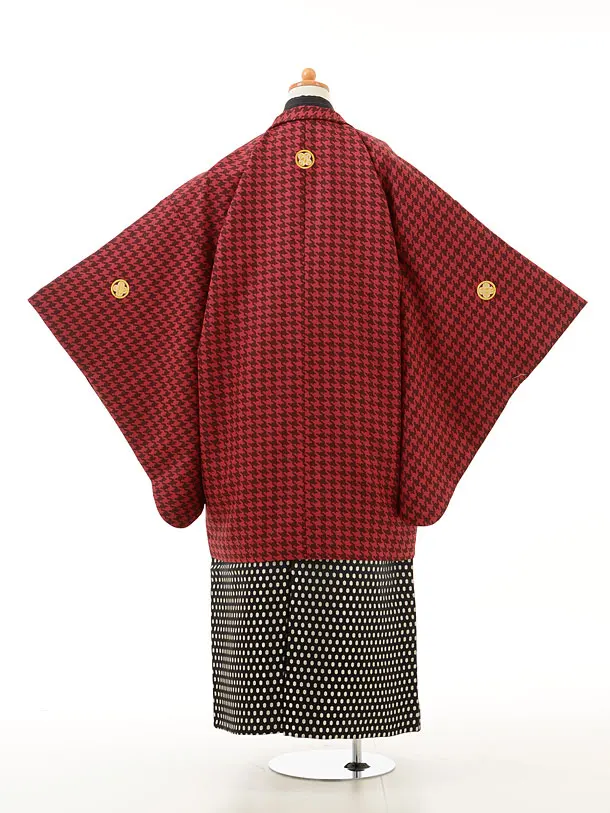小学生 卒業式 袴 男児 0945千鳥格子赤×白黒ぼ