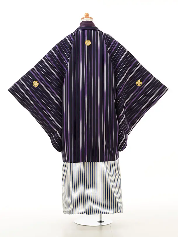 小学生 卒業式 袴 男児 0947紫縞×白紺ラメ縞袴