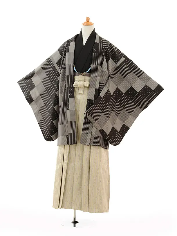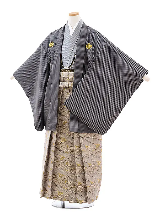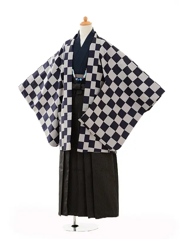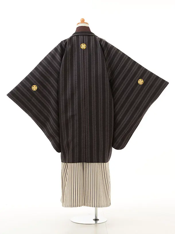 小学生 卒業式 袴 男児 0948黒茶×白黒縞袴