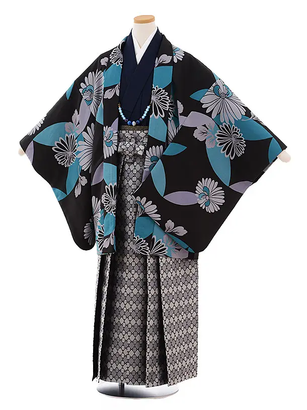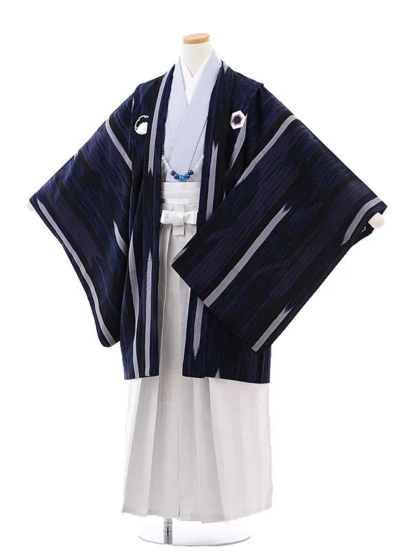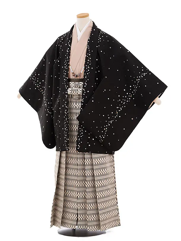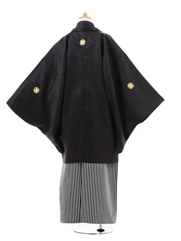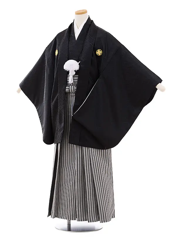 小学生 卒業式 袴 男児 0967黒紋付×黒グレ‐縞