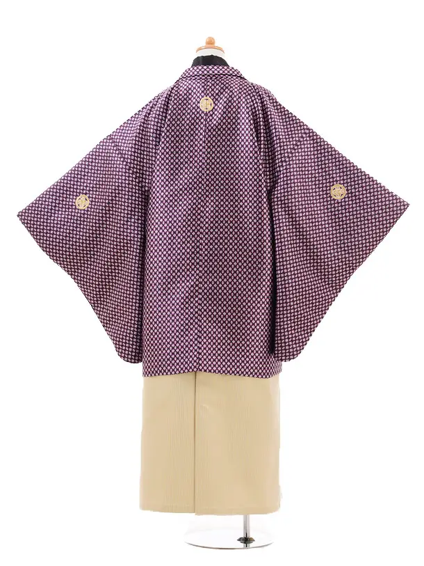 小学生 卒業式 袴 男児 0969紫斜格子×ベージュラメ