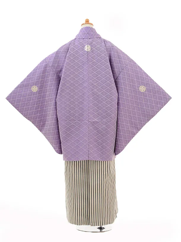 小学生 卒業式 袴 男児 0987紫紋付×黒シルバー縞