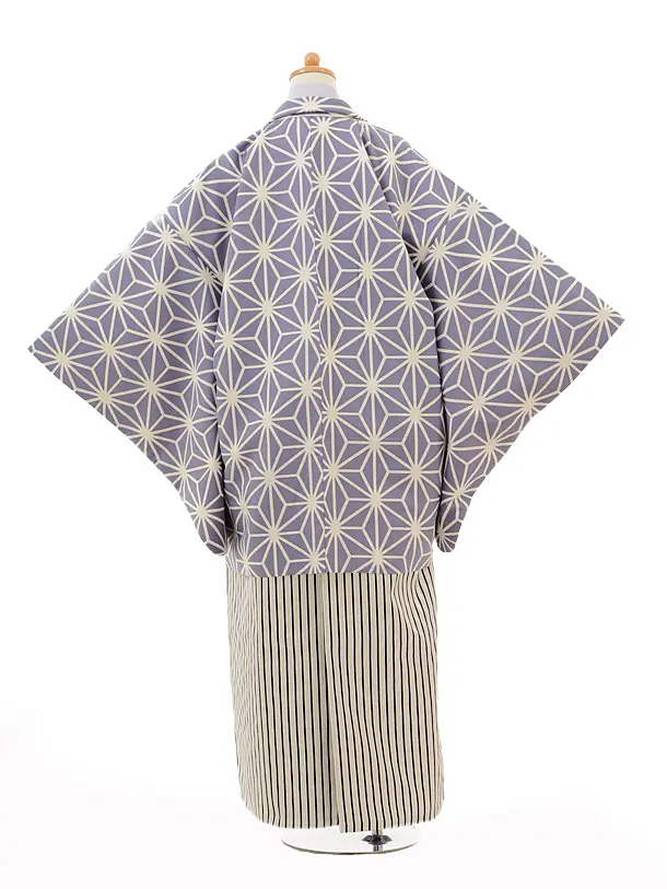 小学生 卒業式 袴 男児 0990薄紫麻の葉×黒シルバ