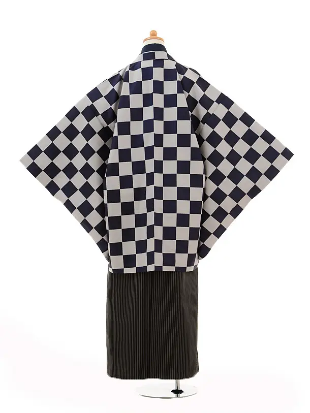小学生 卒業式 袴 男児 9102濃紺市松×黒縞袴