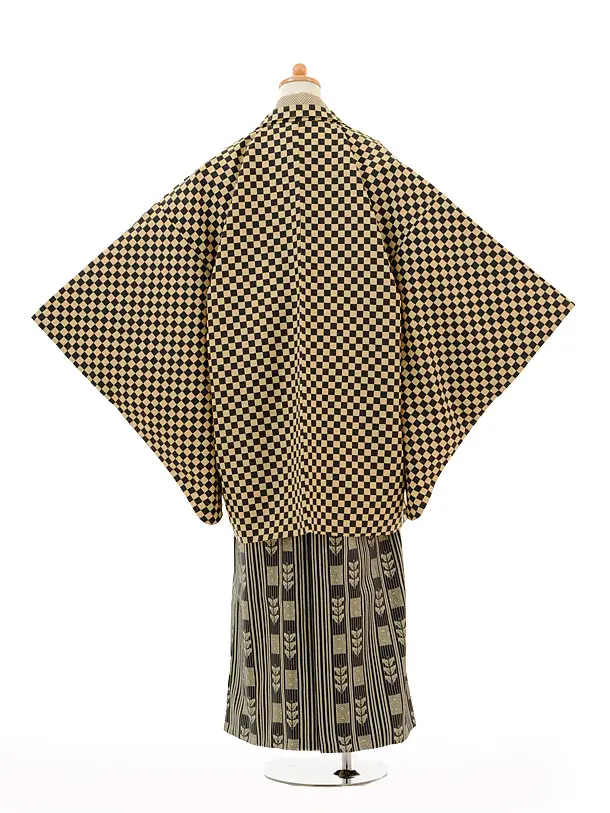 小学生 卒業式 袴 男児 9105黒ベージュ市松×黒ゴ