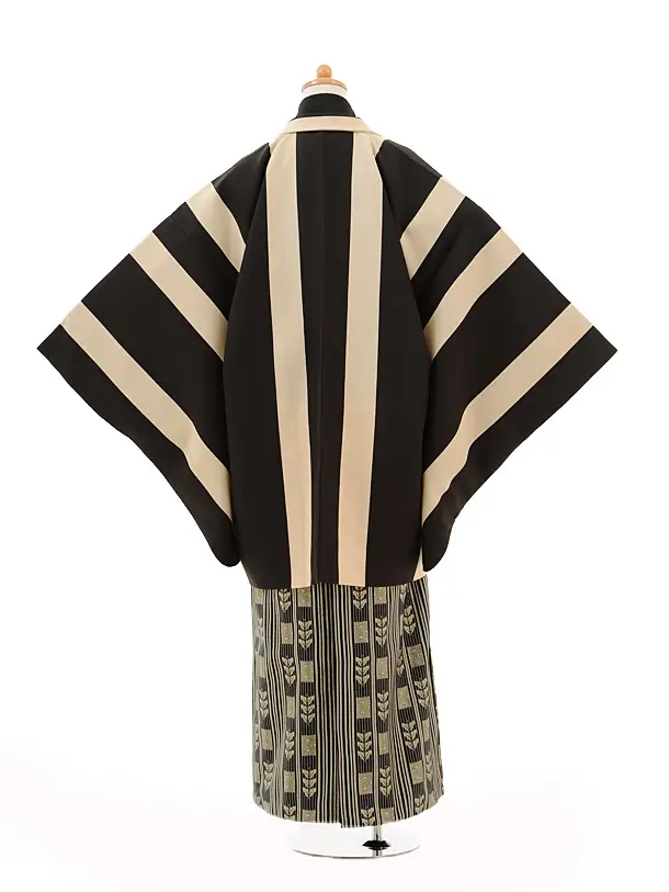 小学生 卒業式 袴 男児 9106黒ベージュ縞×黒ゴール
