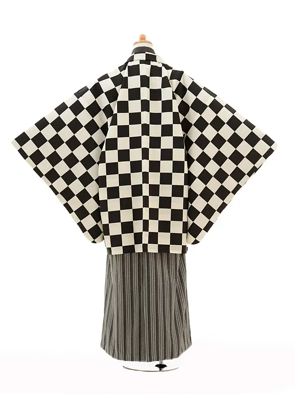 小学生 卒業式 袴 男児 9120黒市松×黒シルバー袴