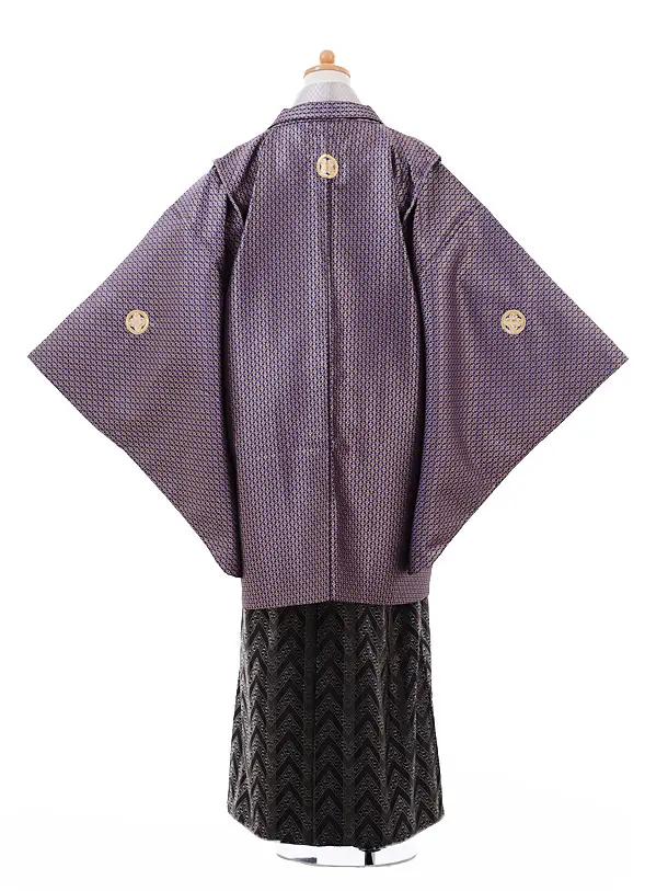 小学生 卒業式 袴 男児 9328紫ゴールド紋付×黒袴