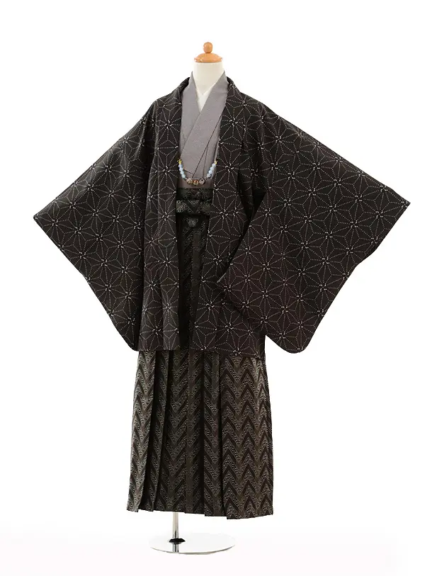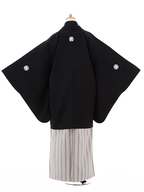 小学生 卒業式 袴 男児 9336黒紋付×グレー袴