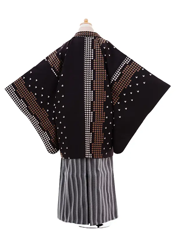 小学生 卒業式 袴 男児 9342濃茶千鳥格子×黒白