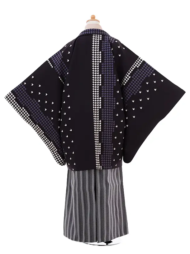 小学生 卒業式 袴 男児 9343黒千鳥格子×黒白縞