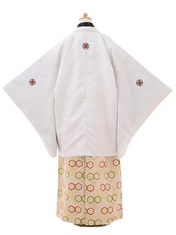 小学校 卒業式 男の子 袴 9415白ゴールドドット紋付×ベージュ