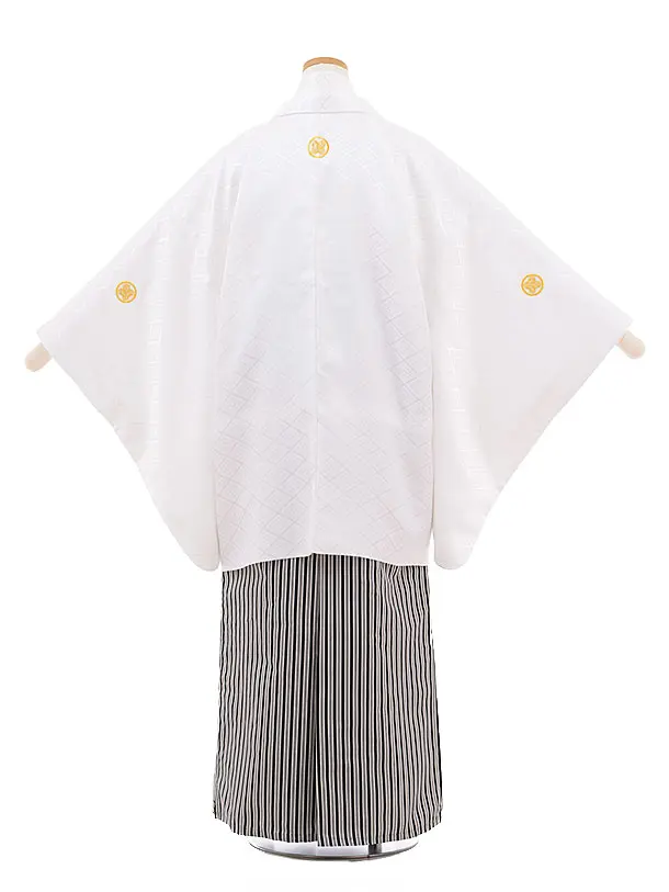 小学校 卒業式 男の子 袴 9445 白地菱柄紋付×白黒縞袴