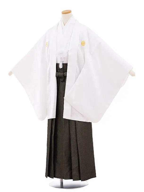 小学校 卒業式 男の子 袴 9450 白地菱柄紋付×グレー袴