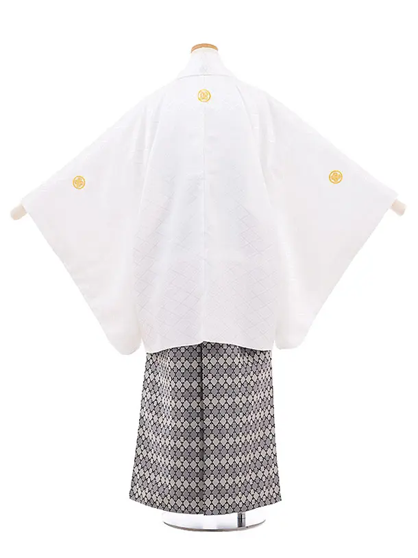 小学校 卒業式 男の子 袴 9451 白地菱柄紋付×グレー袴