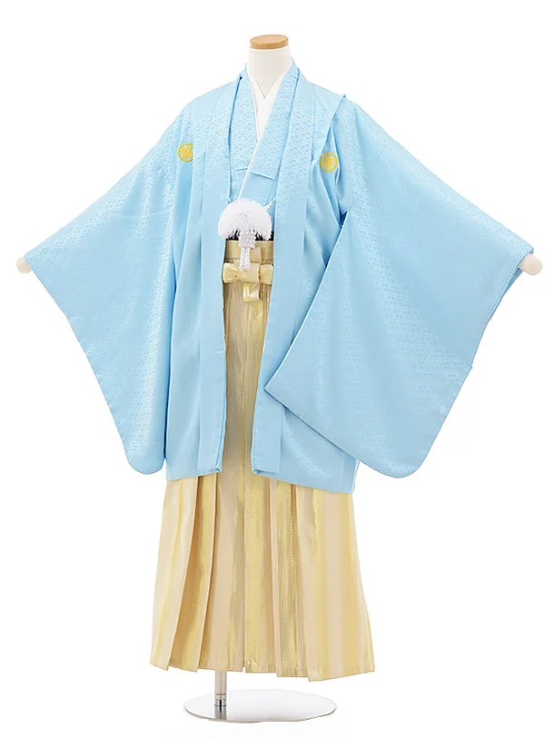 小学校 卒業式 男の子 袴 9453 水色菱柄紋付×白黒縞袴
