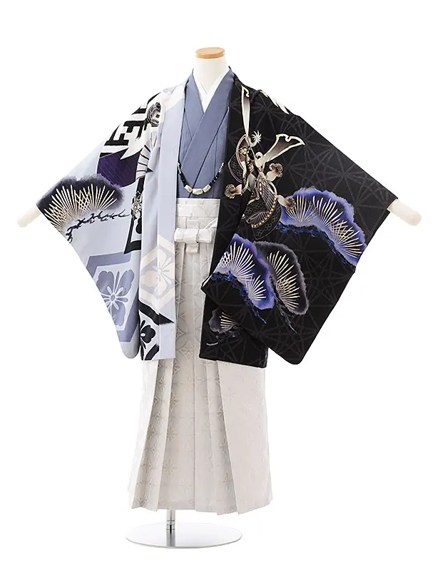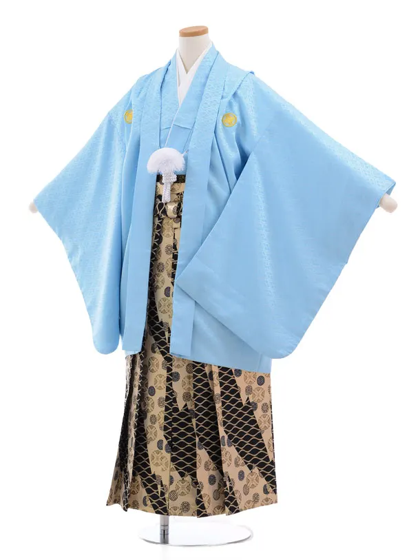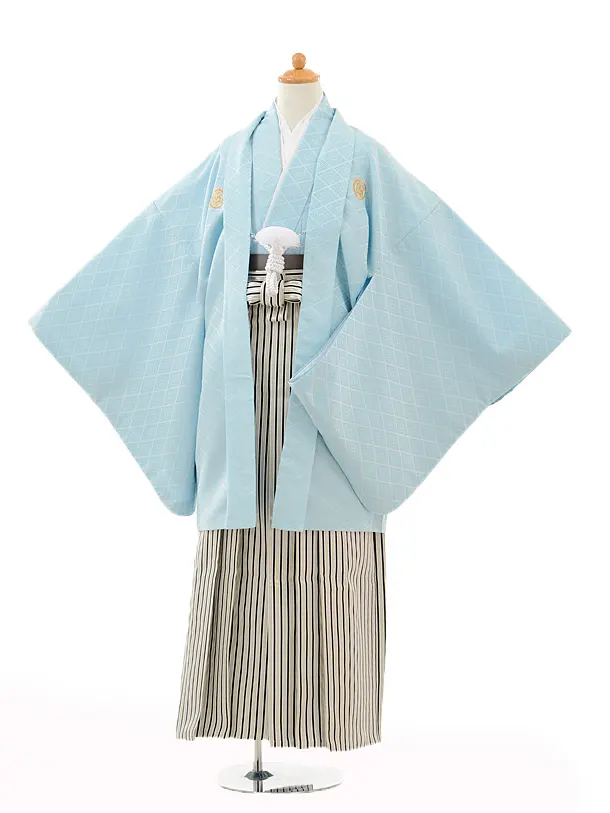 小学校 卒業式 男の子 袴 9456 水色菱柄紋付×グレー袴