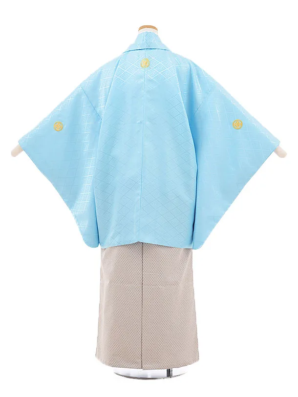 小学校 卒業式 男の子 袴 9458 水色菱柄紋付×グレー袴