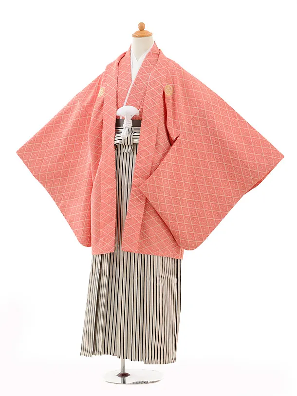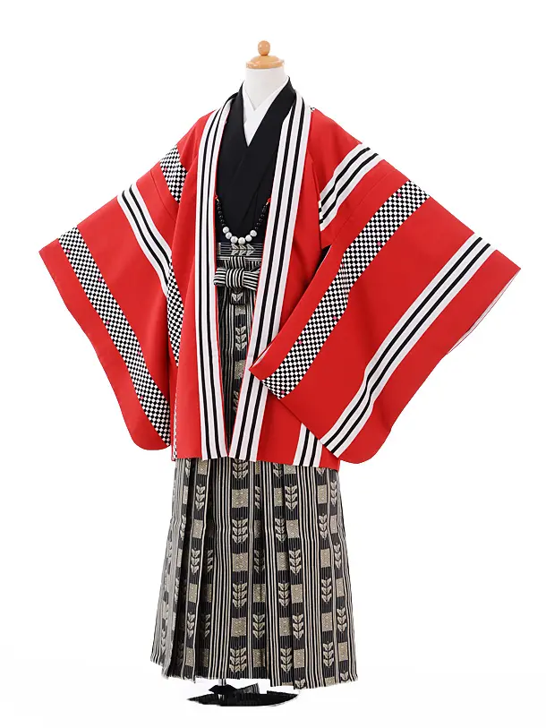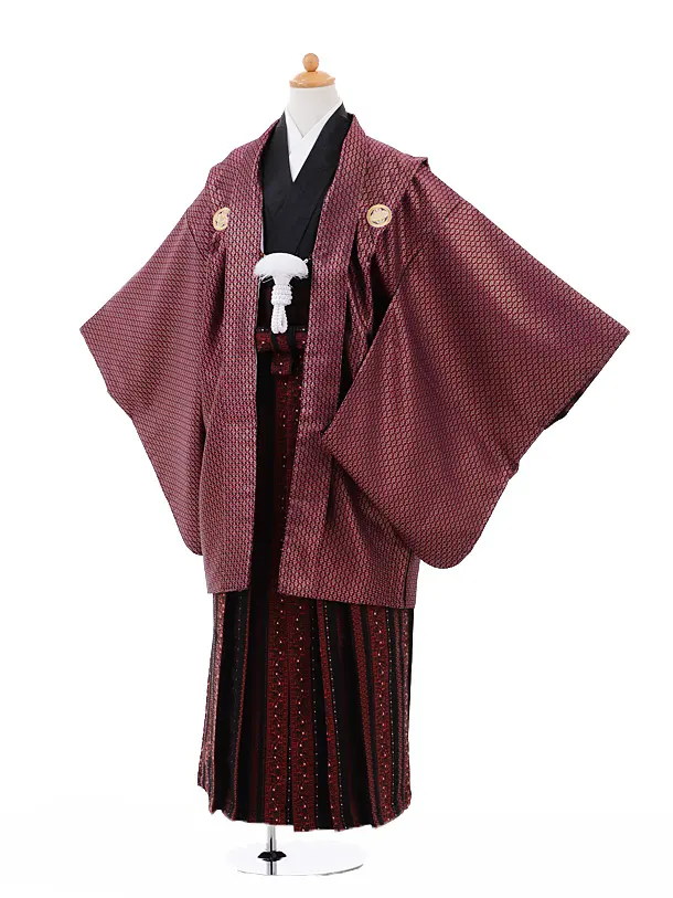 小学校 卒業式 男の子 袴 9469 赤地菱柄紋付×黒シルバー袴
