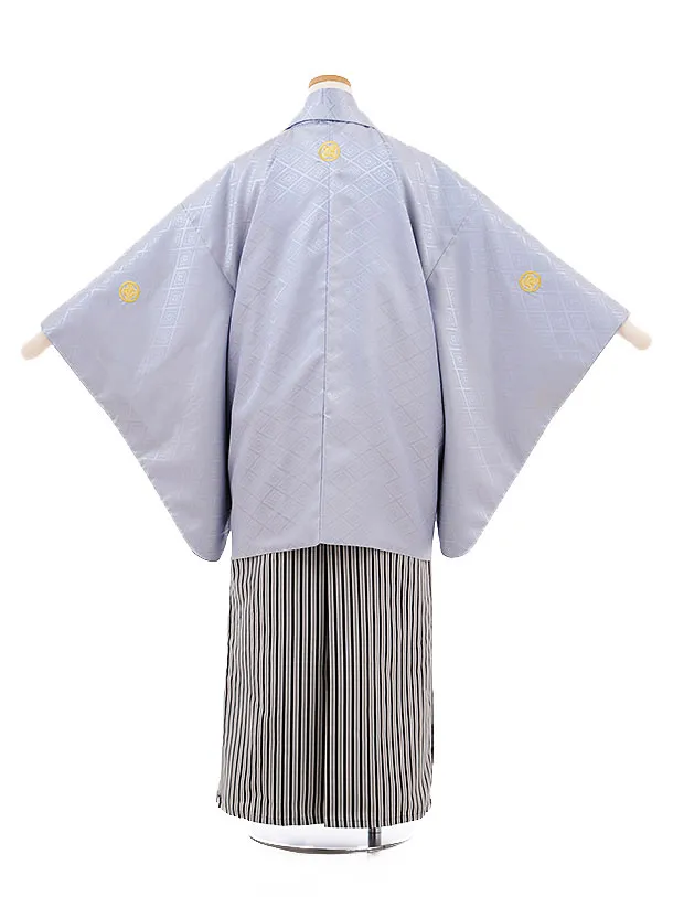 小学校 卒業式 男の子 袴 9473 グレー地紋付×白黒縞袴