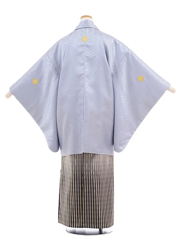 ジュニア袴男児9700 グレー地紋付×グレーぼかし ゴールド縞袴