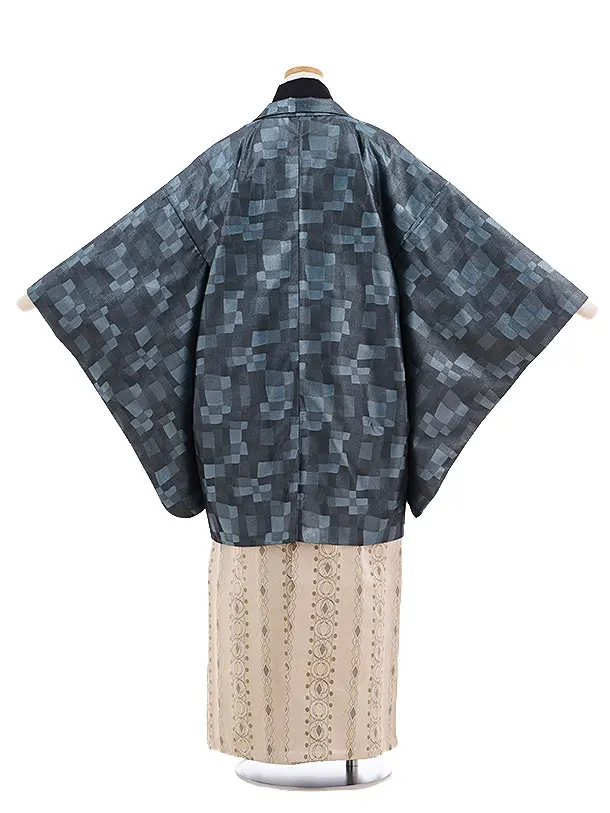 小学校 卒業式 男の子 袴 9701 ブルーグレー変わり格子×ベージュ袴