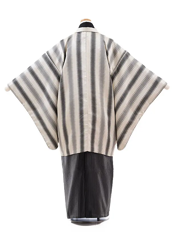 ジュニア袴男9723グレーベージュジグザグストライプ×黒ラメ縞