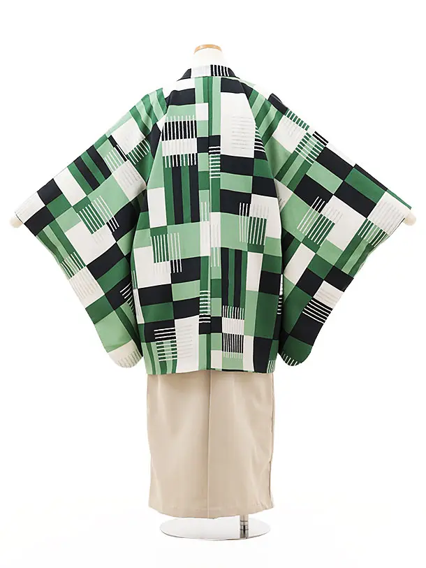 かんたん着付小学生袴 O154【ようよう】geometric 緑×ベージュ