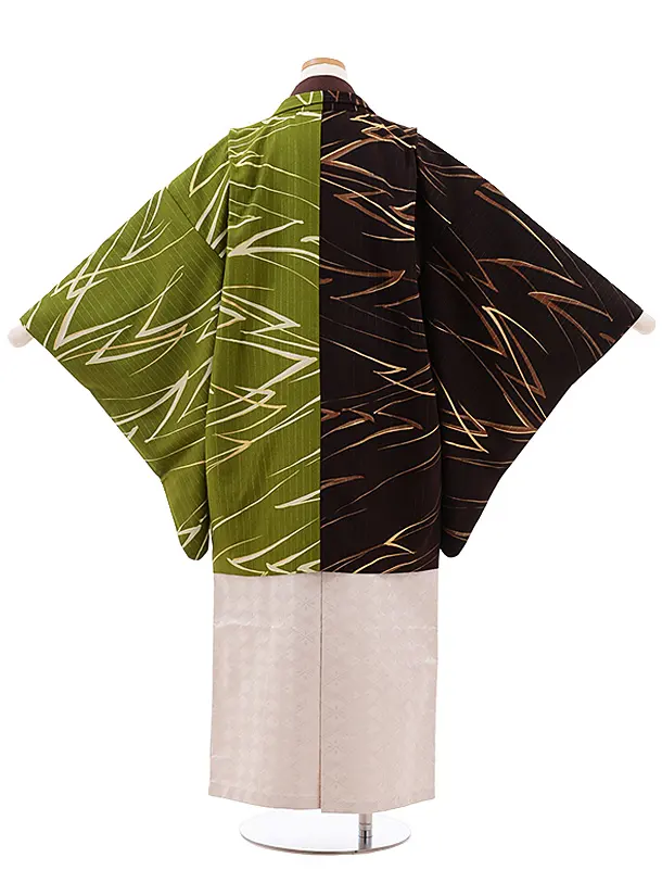 ジュニア袴男児Z048JAPANSTYLE茶グリーン×茶ベージュラメ菱袴